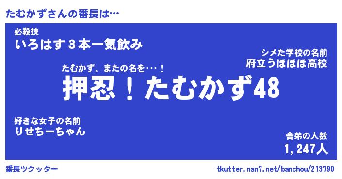 | 意味不明あだ名 | 『ペロリンたむかず』『永久保存たむかず』 |