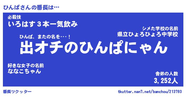 | ヒーロー風カッコイイあだ名 | 『スーパーヒンパ』『ウルトラひんぱマン』 |