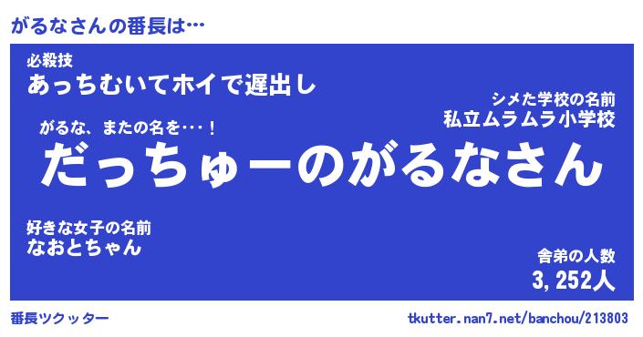 | 肩書あだ名 | 『がるなCEO』『がるな総理大臣』 |
