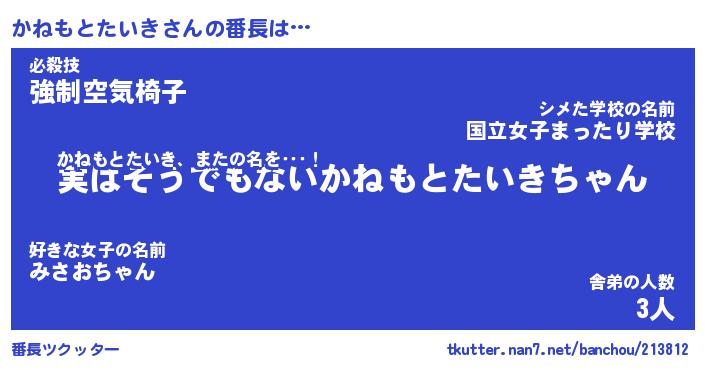 | ヘコむあだ名 | 『かねにゅー』『牛乳』『かね太郎』 |