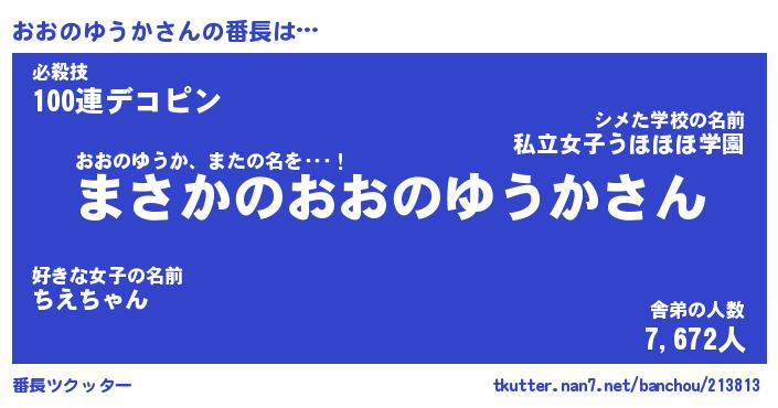 | 伝説のあだ名 | 『伝説のスナイパーおおのゆうか』 |