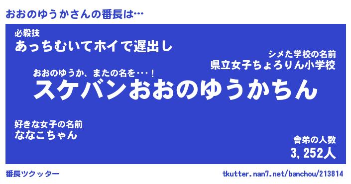 | 恥ずかしいあだ名 | 『プリティーおおのゆうか』『おおっちょ』 |