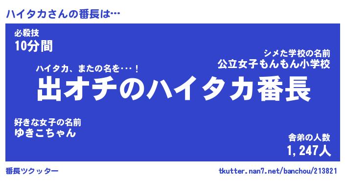 | 意味不明あだ名 | 『ペロリンハイタカ』『永久保存ハイタカ』 |