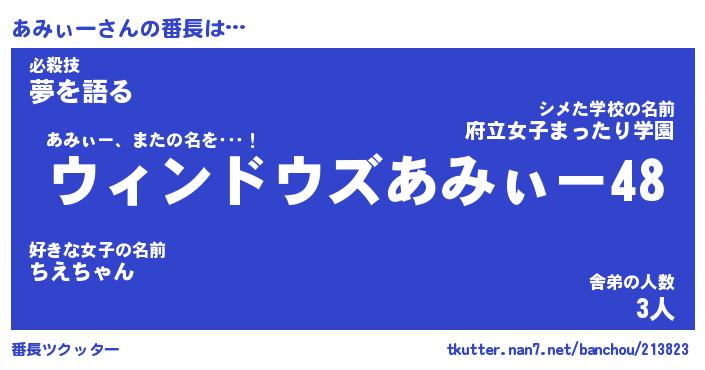 | 意味不明あだ名 | 『ペロリンあみぃー』『永久保存あみぃー』 |