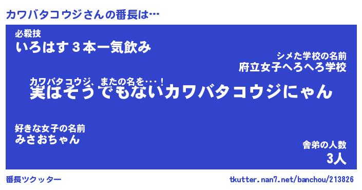 | 肩書あだ名 | 『カワバタコウジCEO』 |