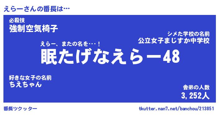 | ファンタジー風あだ名 | 『エラフェル』『エターナルエラーー』 |
