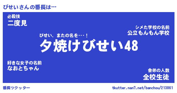 | ヘコむあだ名 | 『びせもー』『つくし』『びせっ子』 |