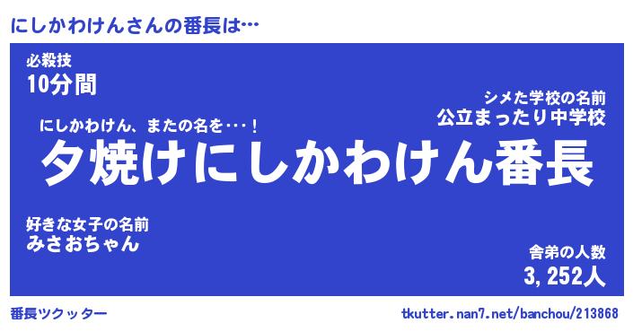 | ヒーロー風カッコイイあだ名 | 『スーパーニシカワケン』『幻影騎士ニシ』 |