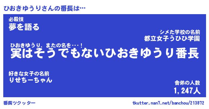 | 肩書あだ名 | 『ひおきゆうり御曹司』 |