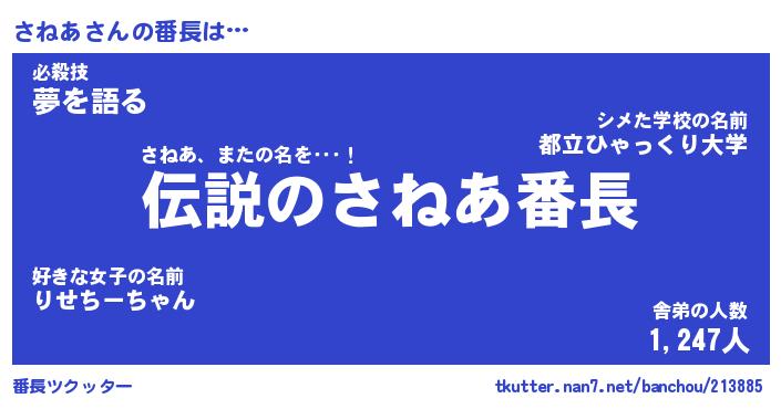 | 肩書あだ名 | 『さねあ社長』『さねあ国家主席』 |