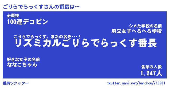 | 意味不明あだ名 | 『ペロリンごりらでらっくす』 |