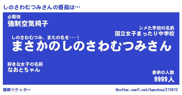 | 伝説のあだ名 | 『伝説のスナイパーしのさわむつみ』 |