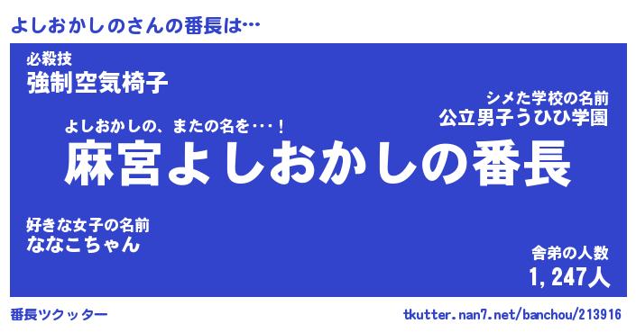 | 伝説のあだ名 | 『不死鳥のスナイパーよしおかしの』 |