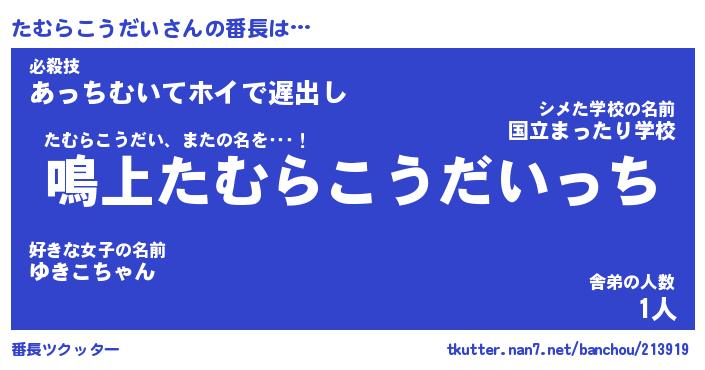 | 2回繰り返すあだ名 | 『たむたむ』『たたむむ』『ぬるぬる』 |