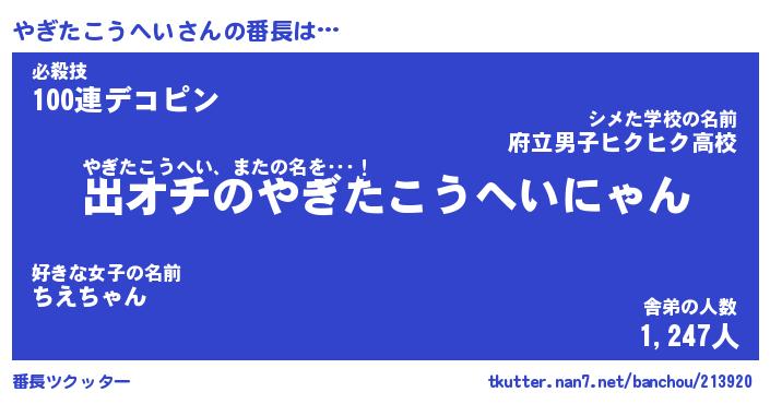 | 意味不明あだ名 | 『ペロリンやぎたこうへい』 |