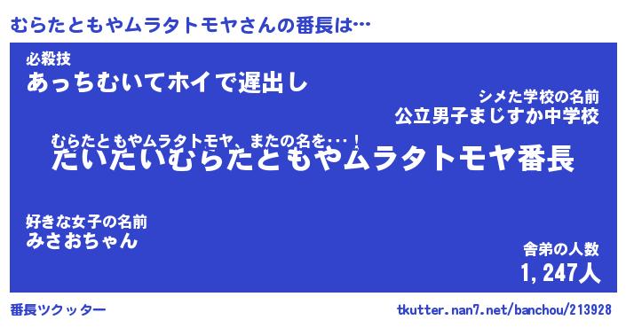 | 意味不明あだ名 | 『ペロリンむらたともやムラタトモヤ』 |