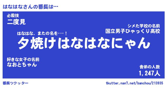 | ファンタジー風あだ名 | 『ハナフェル』『エターナルハナハナー』 |