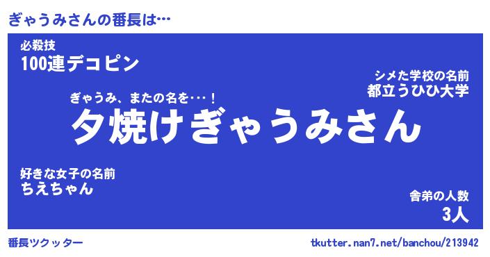 | 意味不明あだ名 | 『ペロリンぎゃうみ』『永久保存ぎゃうみ』 |