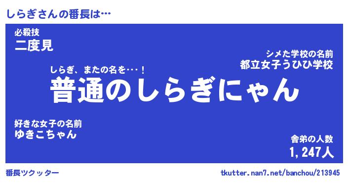 | 意味不明あだ名 | 『ペロリンしらぎ』『しらぎフォーエバー』 |