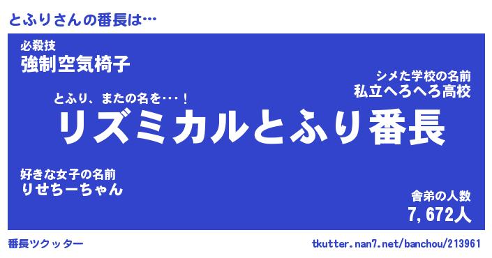 | 肩書あだ名 | 『とふり社長』『とふり国家主席』 |