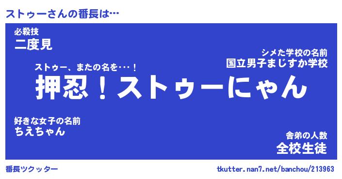 | 意味不明あだ名 | 『ペロリンストゥー』『永久保存ストゥー』 |