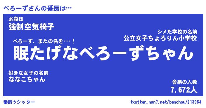 | 意味不明あだ名 | 『ペロリンべろーず』『永久保存べろーず』 |
