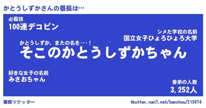 | 肩書あだ名 | 『かとうしずか御曹司』 |