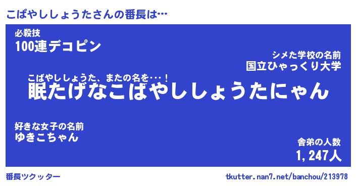 | 肩書あだ名 | 『こばやししょうた店長』 |