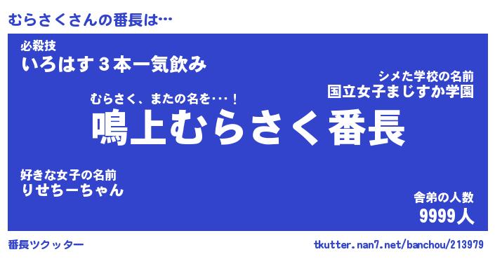 | ヒーロー風カッコイイあだ名 | 『スーパームラサク』『銀牙騎士ムラ』 |