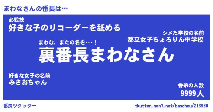 | 肩書あだ名 | 『まわな御曹司』『まわな国家主席』 |