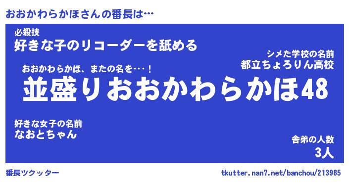 | 肩書あだ名 | 『おおかわらかほ店長』 |