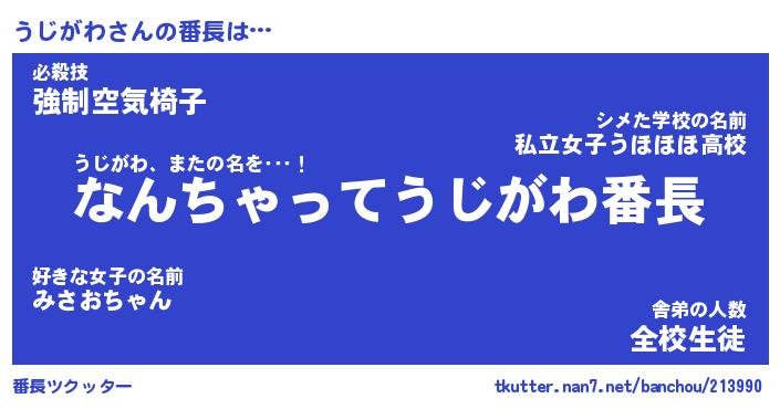 | 肩書あだ名 | 『うじがわ店長』『うじがわ総理大臣』 |