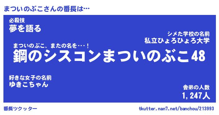 | 伝説のあだ名 | 『封印されしスナイパーまついのぶこ』 |
