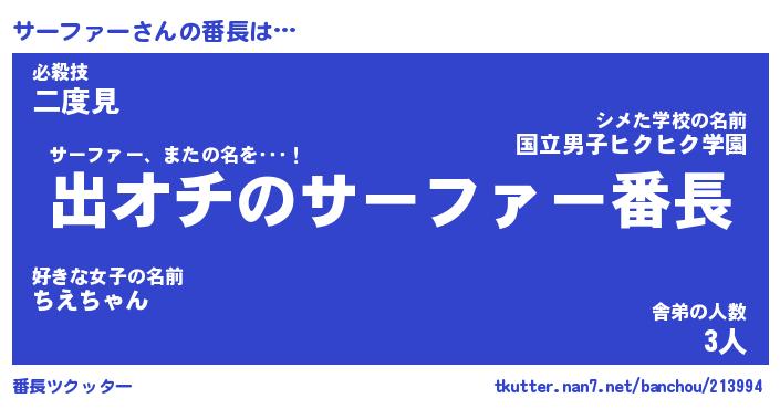 | ファンタジー風あだ名 | 『サーフェル』『エターナルサーファーー』 |