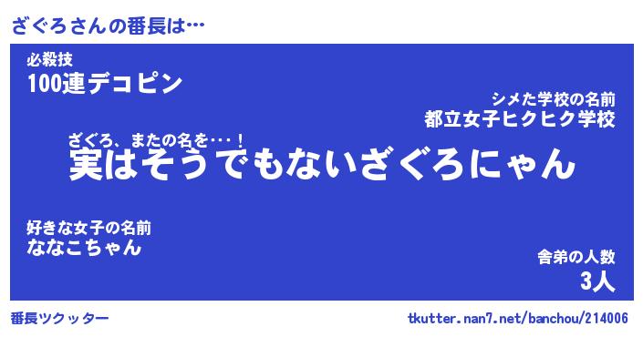 | 意味不明あだ名 | 『ペロリンざぐろ』『ざぐろフォーエバー』 |