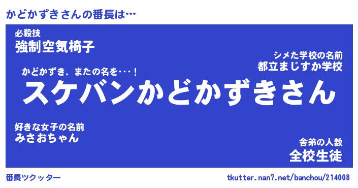 | 肩書あだ名 | 『かどかずき御曹司』『かどかずき塾長』 |