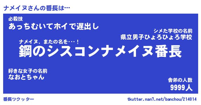 | ヒーロー風カッコイイあだ名 | 『スーパーナメイヌ』『天弓騎士ナメ』 |