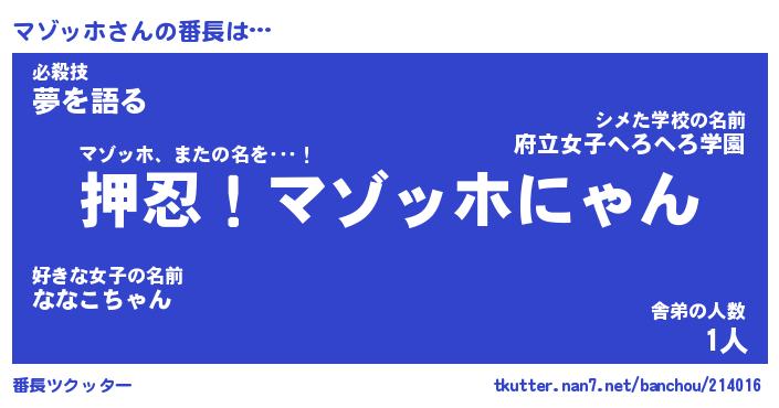 | ファンタジー風あだ名 | 『マゾフェル』『エターナルマゾッホー』 |