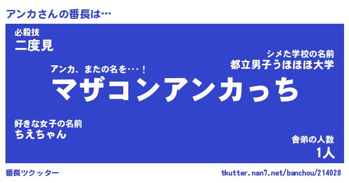 | 意味不明あだ名 | 『ペロリンアンカ』『アンカフォーエバー』 |