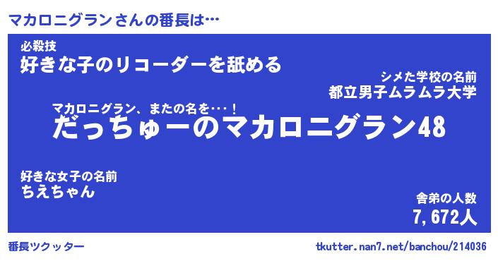 | ピコ太郎風あだ名 | 『マコ太郎』『ピマ三郎』『マカ四郎』 |