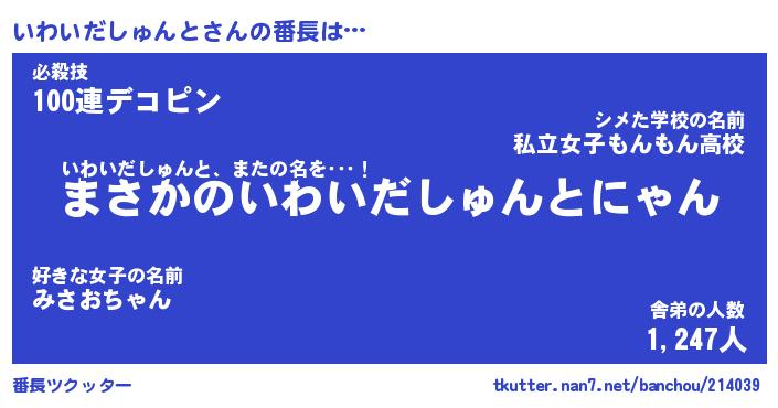 | ピコ太郎風あだ名 | 『イコ一郎』『ピイ太郎』『イワ史郎』 |