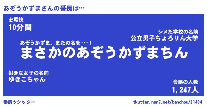 | 伝説のあだ名 | 『伝説のスナイパーあぞうかずま』 |