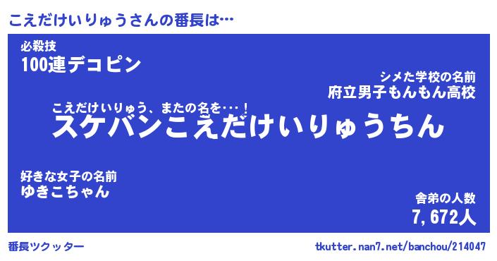 | ヒーロー風カッコイイあだ名 | 『スーパーコエダケイリュウ』 |