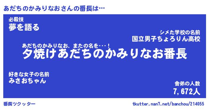 | ツイッター | あだちのかみりなおさんのツイッターID『fukuyoka_nyan』 |