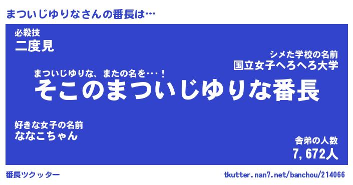 | 意味不明あだ名 | 『ペロリンまついじゆりな』 |