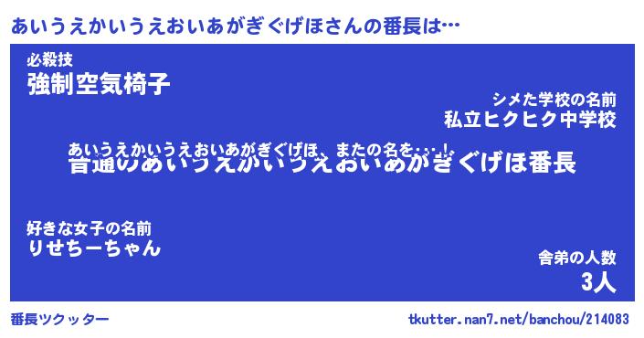 | 肩書あだ名 | 『あいうえかいうえおいあがぎぐげほ店長』 |