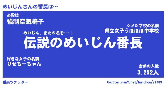 | 肩書あだ名 | 『めいじん社長』『めいじん大統領』 |