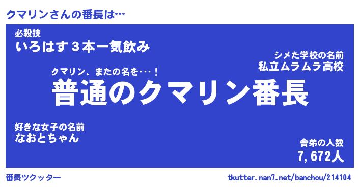 | ヒーロー風カッコイイあだ名 | 『スーパークマリン』『銀牙騎士クマ』 |