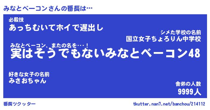| ヒーロー風カッコイイあだ名 | 『スーパーミナトベーコン』 |