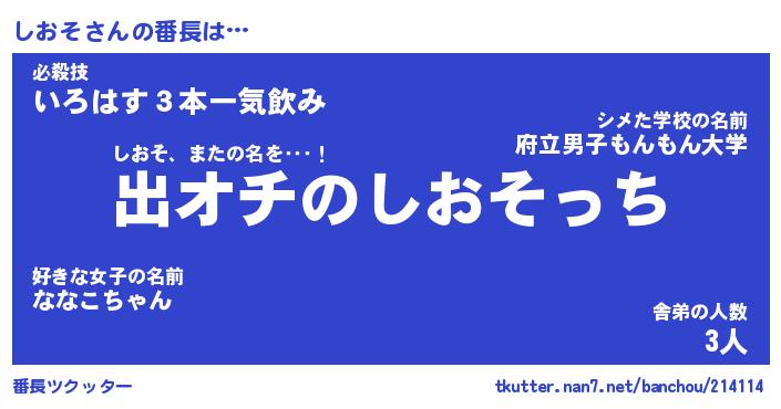 | ヒーロー風カッコイイあだ名 | 『スーパーシオソ』『ウルトラしおそマン』 |